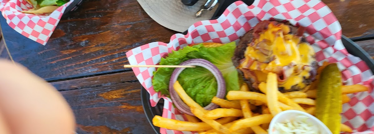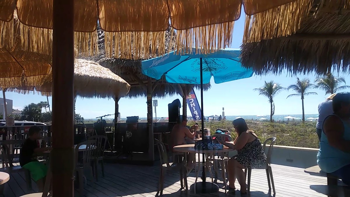 Great spot for a bite to eat while on the beach. Music by Boston Bob was good. Sat for a while before heading to the beach. Servers at bar do a great job of ensuring that the wait is not too long. The bacon cheeseburger was great real bacon and fresh hamburger Not frozen patty!! The nachos were good. Overall good 'murican experience.