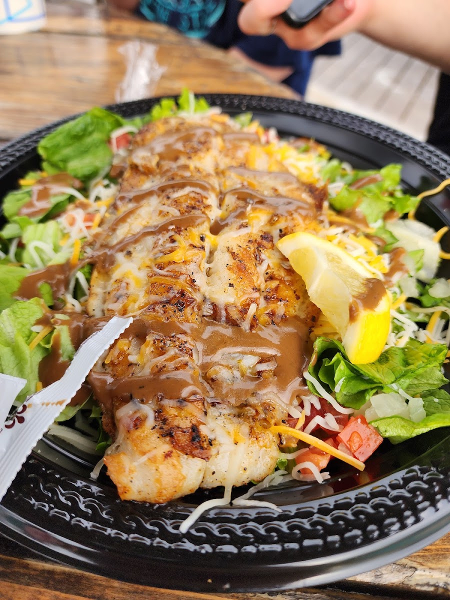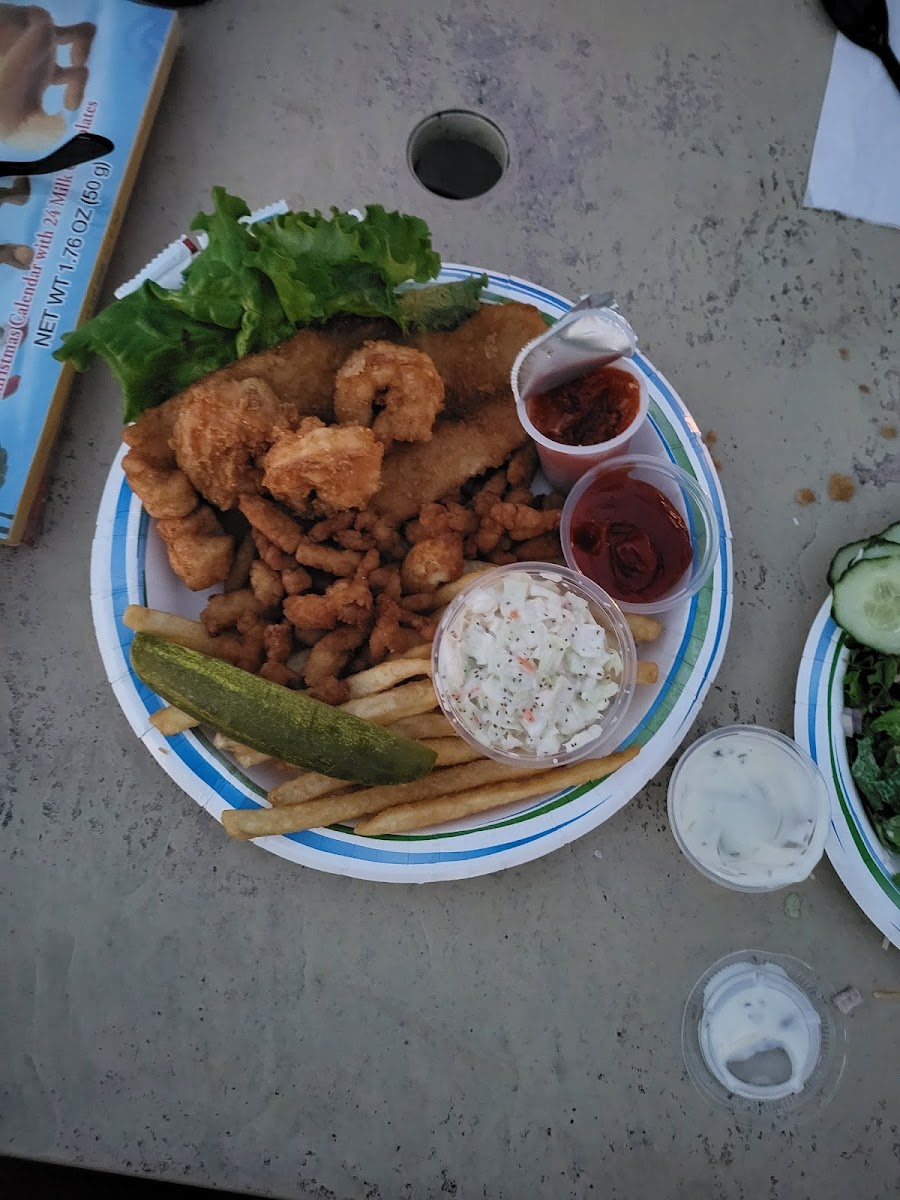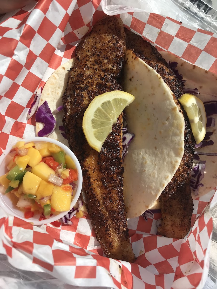 We fell upon this place just walking around was going to the grocery store and was deciding where to eat lunch it is a small place but oh my the food was delicious. I ordered cheeseburger and fries and mom my got the fish tacos with the mango salsa. The amount of food was good proportions had to wait awhile but we was on vacation so no big deal. These fish tacos ended up being my moms favorite of the week!! Whatever the seasoning on the fries are are absolutely delicious. I thought it was seasoning salt but I dont think so. I wish i knew what it was. We definitely will revisit when were in town again. Thank you. Great beach location,can walk and take pics while waiting on your food. They had little sovereign shop,ice cream,bar area. Overall great experience glad we found it!!